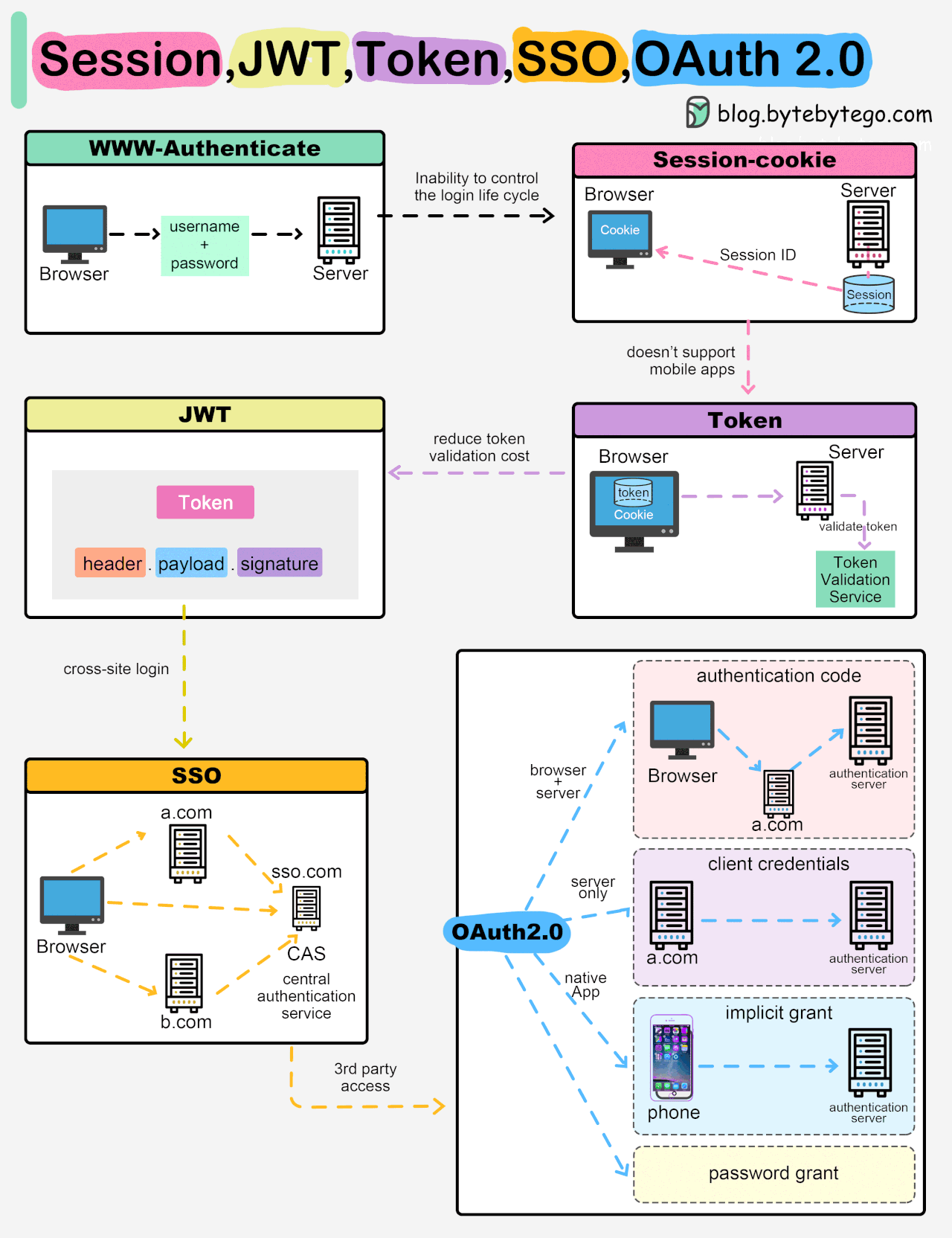로그인 인증 방식을 다이어그램으로 잘 설명한 글이 있어서 정리해보았다.