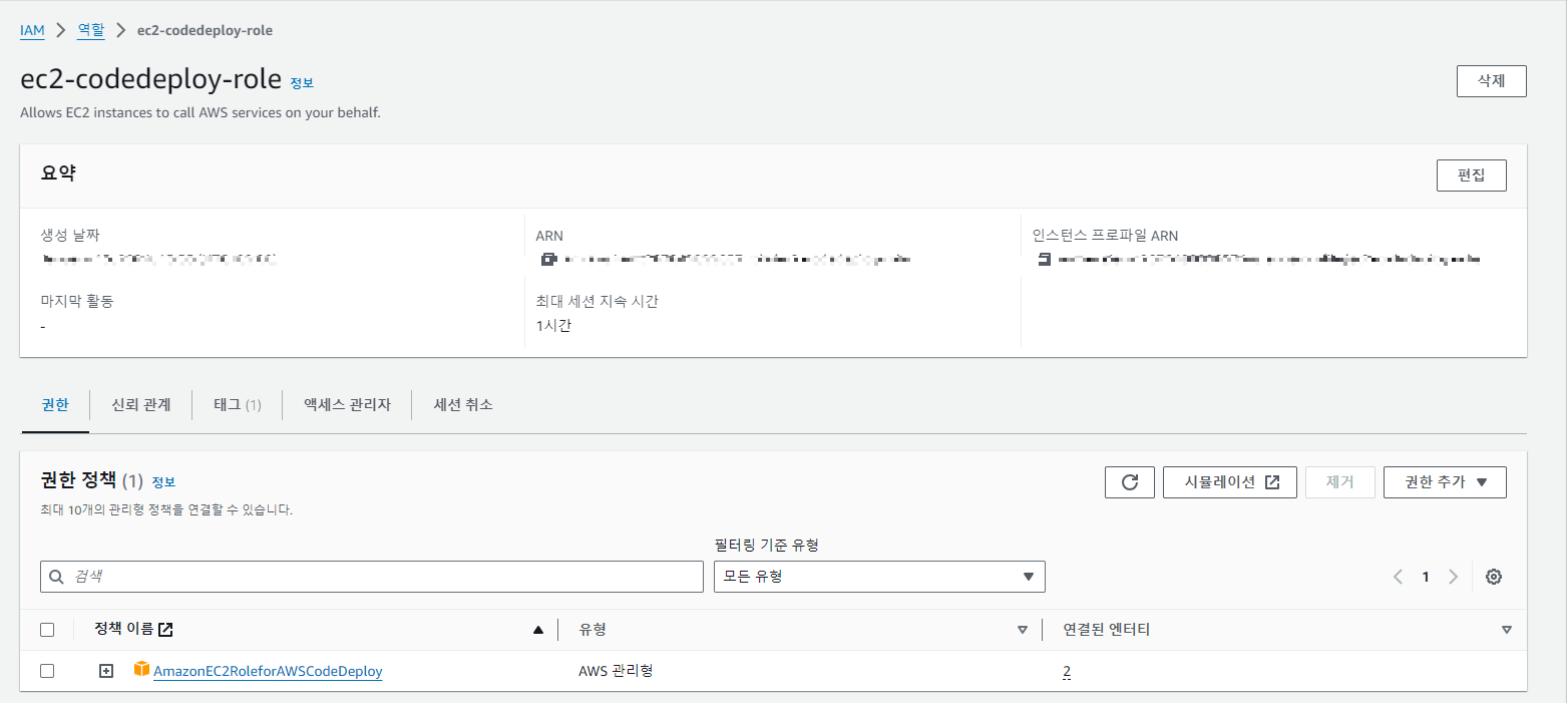 code deploy > 애플리케이션 생성> 배포그룹 생성