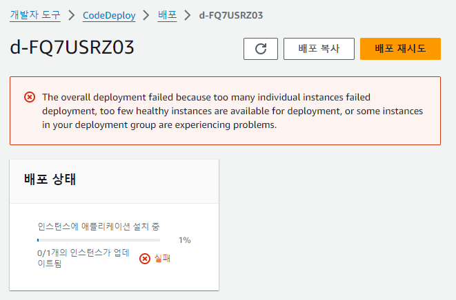 Codedeploy 배포 에러 [The deployment failed because no instances were found for your deployment group.]