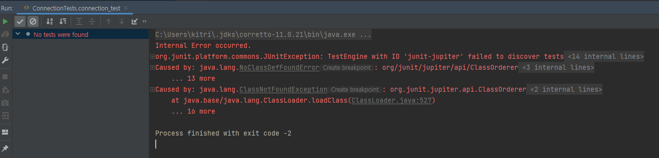 테스트 코드 실행 오류